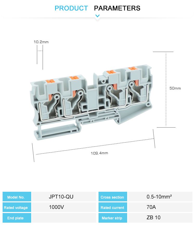 PT10-TW-PE push-in βίδα χωρίς βίδα multi-conductor τερματικό μπλοκ καινοτομεί τεχνολογία γείωσης: push-in κλειδαριά-χωρίς βίδα σχεδιασμού, δευτέρου επιπέδου εξαιρετικά αξιόπιστη σύνδεση και χωρίς χαλάρωση. Τα υλικά υψηλής ποιότητας είναι εξαιρετικά αγώγιμα, ανθεκτικά, ανθεκτικά στις κραδασμούς, υψηλή θερμοκρασία και μηχανική τάση και κατάλληλα για σκληρά περιβάλλοντα. Η ταυτόχρονη σύνδεση και ο συμπαγής σχεδιασμός των πολλαπλών αγωγών πληρούν τις πολύπλοκες απαιτήσεις γείωσης και διαστημικού περιορισμού, καθιστώντας την εξαιρετικά αποτελεσματική για εφαρμογές σε βιομηχανικό εξοπλισμό, κέντρα δεδομένων και άλλους τομείς, παρέχοντας βολικές λύσεις γείωσης υψηλής απόδοσης.
