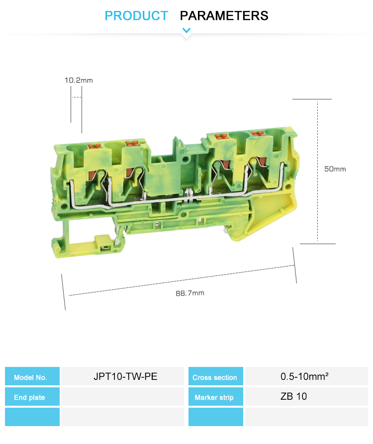 Το PT10-TW-PE push-in βίδα χωρίς βίδα multi-conductor block τερματικού μπλοκ επανάσταση διαλύματα γείωσης: ο σχεδιασμός χωρίς βίδες που κλειδώνει την ώθηση ολοκληρώνει εξαιρετικά αξιόπιστες συνδέσεις μέσα σε λίγα δευτερόλεπτα, εξαλείφοντας τον κίνδυνο χαλάρωσης και υποστήριξης ταυτόχρονης σύνδεσης των πολλαπλών αγωγών για να ανταποκριθεί στις πολύπλοκες απαιτήσεις των σύγχρονων ηλεκτρικών συστημάτων. Τα υλικά υψηλής ποιότητας είναι ιδιαίτερα αγώγιμα, ανθεκτικά στις κραδασμούς, υψηλής θερμοκρασίας και μηχανικής καταπόνησης. Ο συμπαγής σχεδιασμός είναι κατάλληλος για σενάρια περιορισμένου χώρου. Εφαρμόζεται αποτελεσματικά σε τομείς όπως ο βιομηχανικός εξοπλισμός, τα κέντρα δεδομένων και ο αυτοματοποίηση των κτιρίων, παρέχοντας στους μηχανικούς μια βολική και υψηλή επιλογή γείωσης.