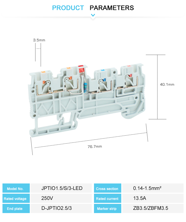 Μπλοκ ακροδεκτών σύνδεσης JPT 2.5/1P Πιστοποιητικό CE για αυτοσυναρμολόγηση